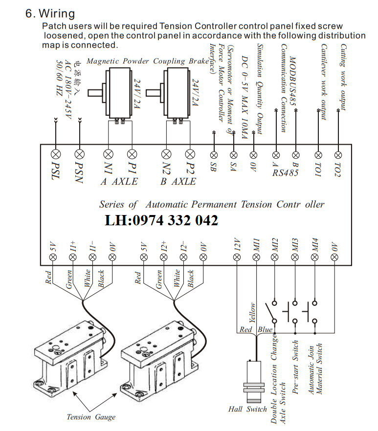 ★ Chế độ đầu ra chính: đầu ra 0-24V /2A × 2, được kết nối với thắng bột từ,ly hợp từ
