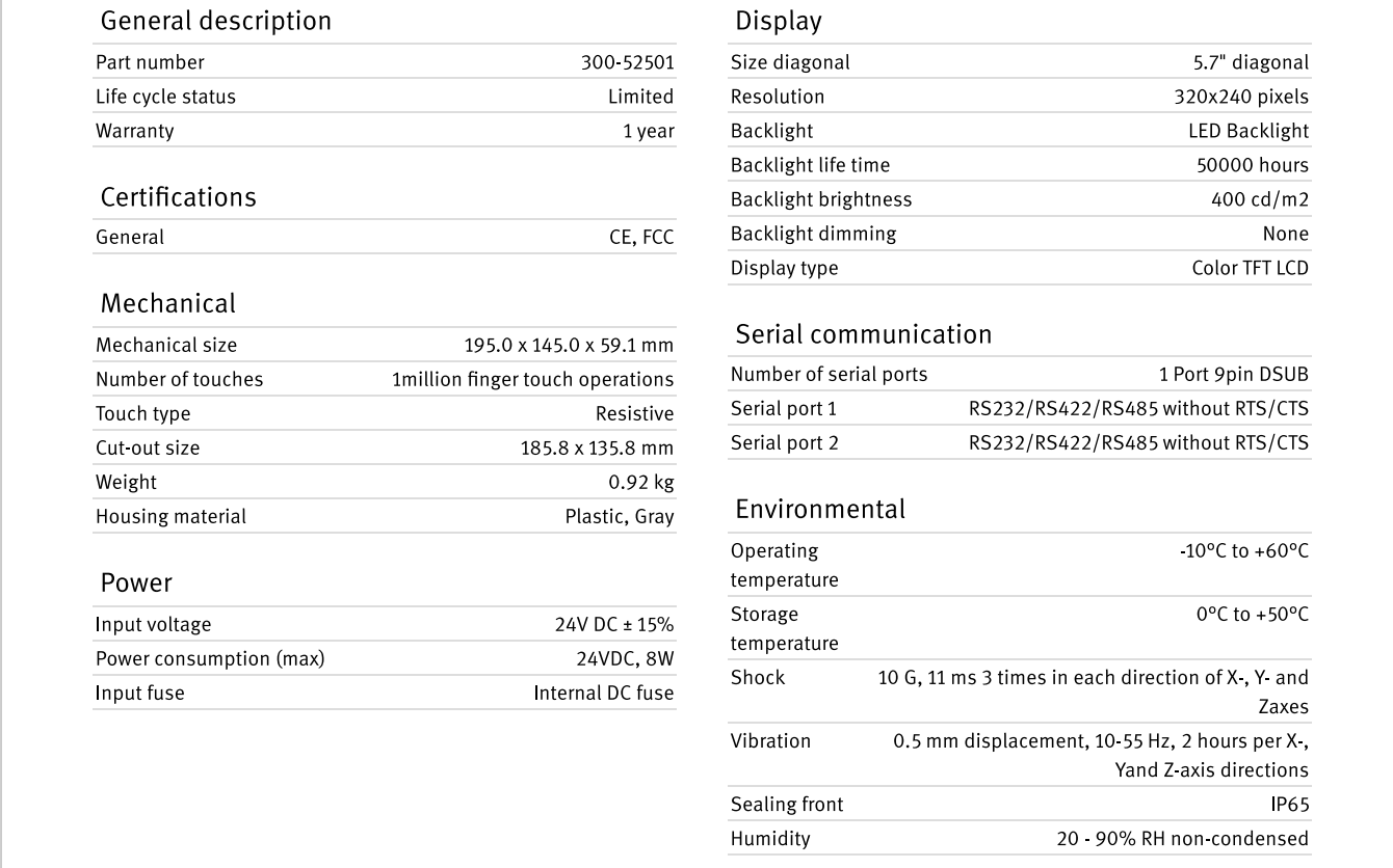 Thông số màn hình PWS5610T-S: